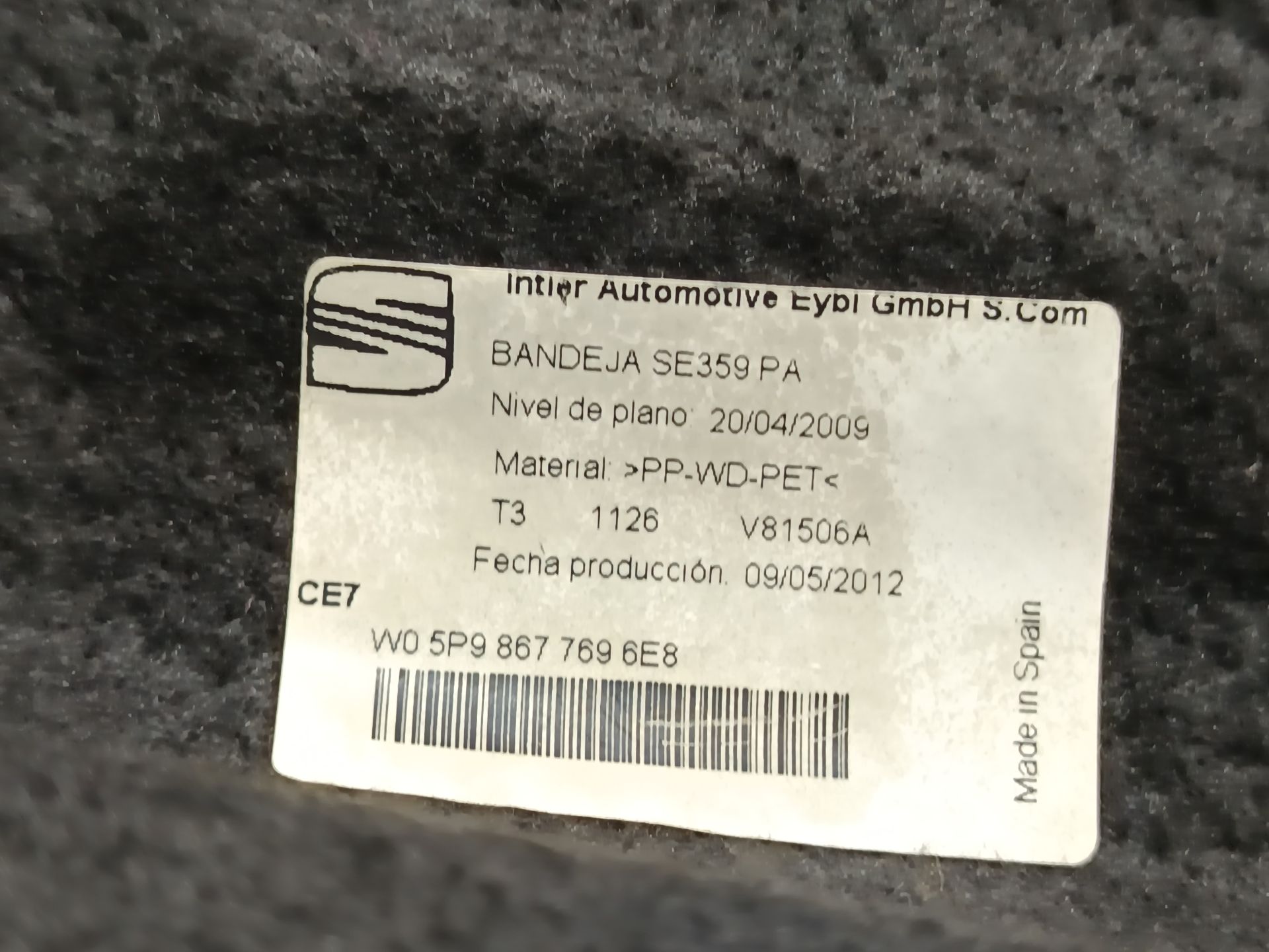 Disponemos la pieza 5P98677696E8 actualmente desmontada.