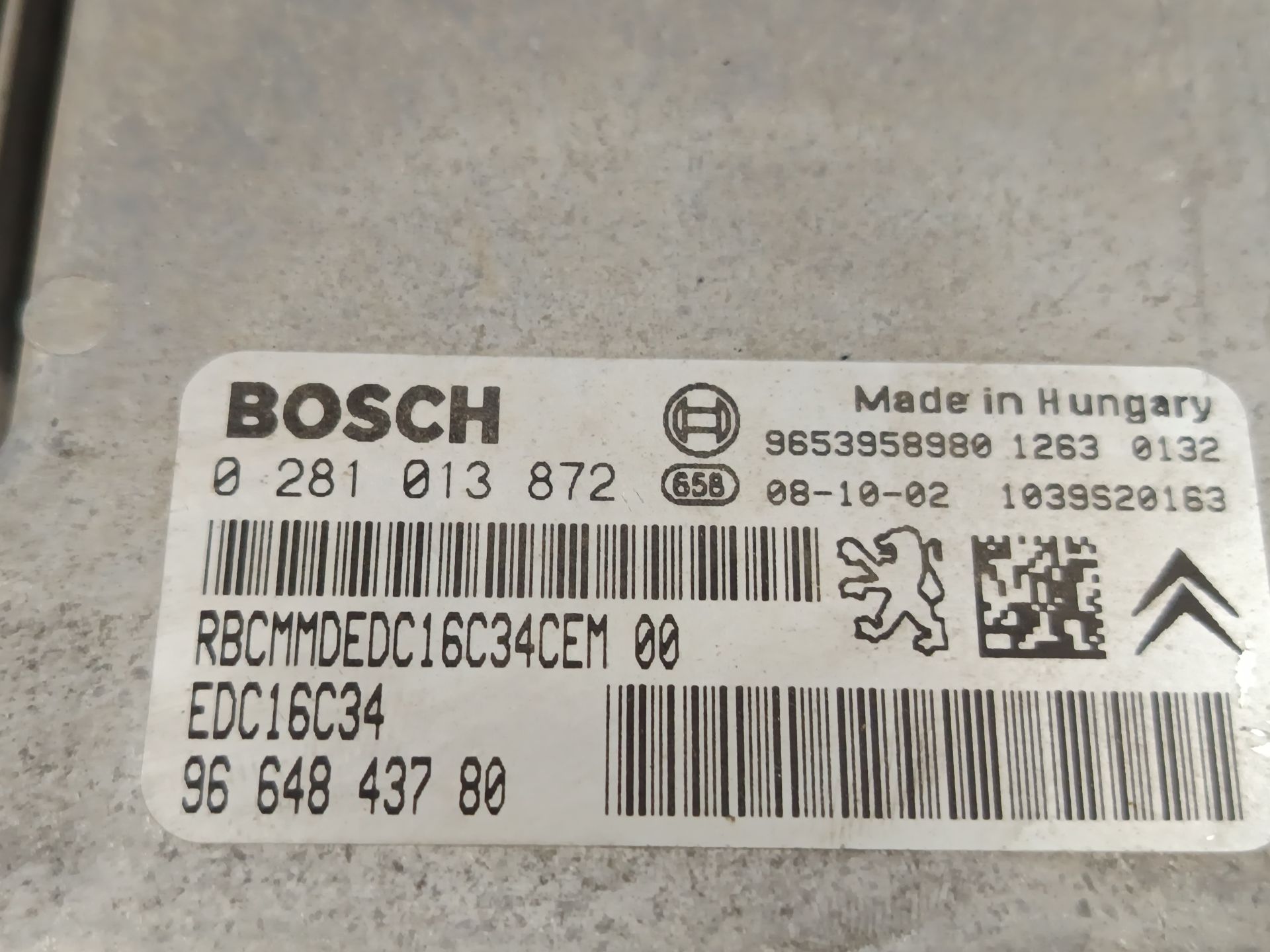Disponemos la pieza 0281013872 actualmente desmontada.