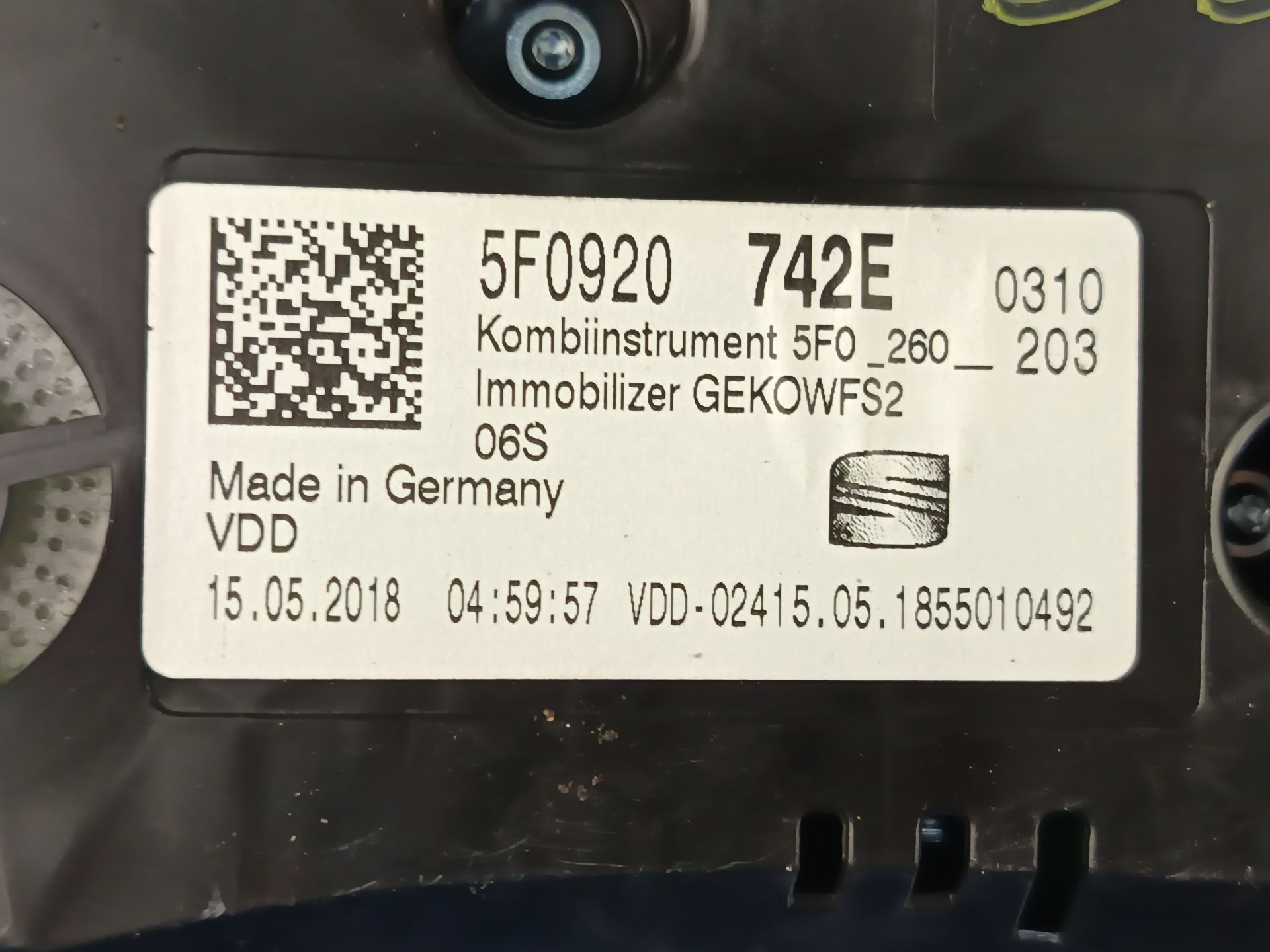 Disponemos la pieza 5F0920742E actualmente desmontada.