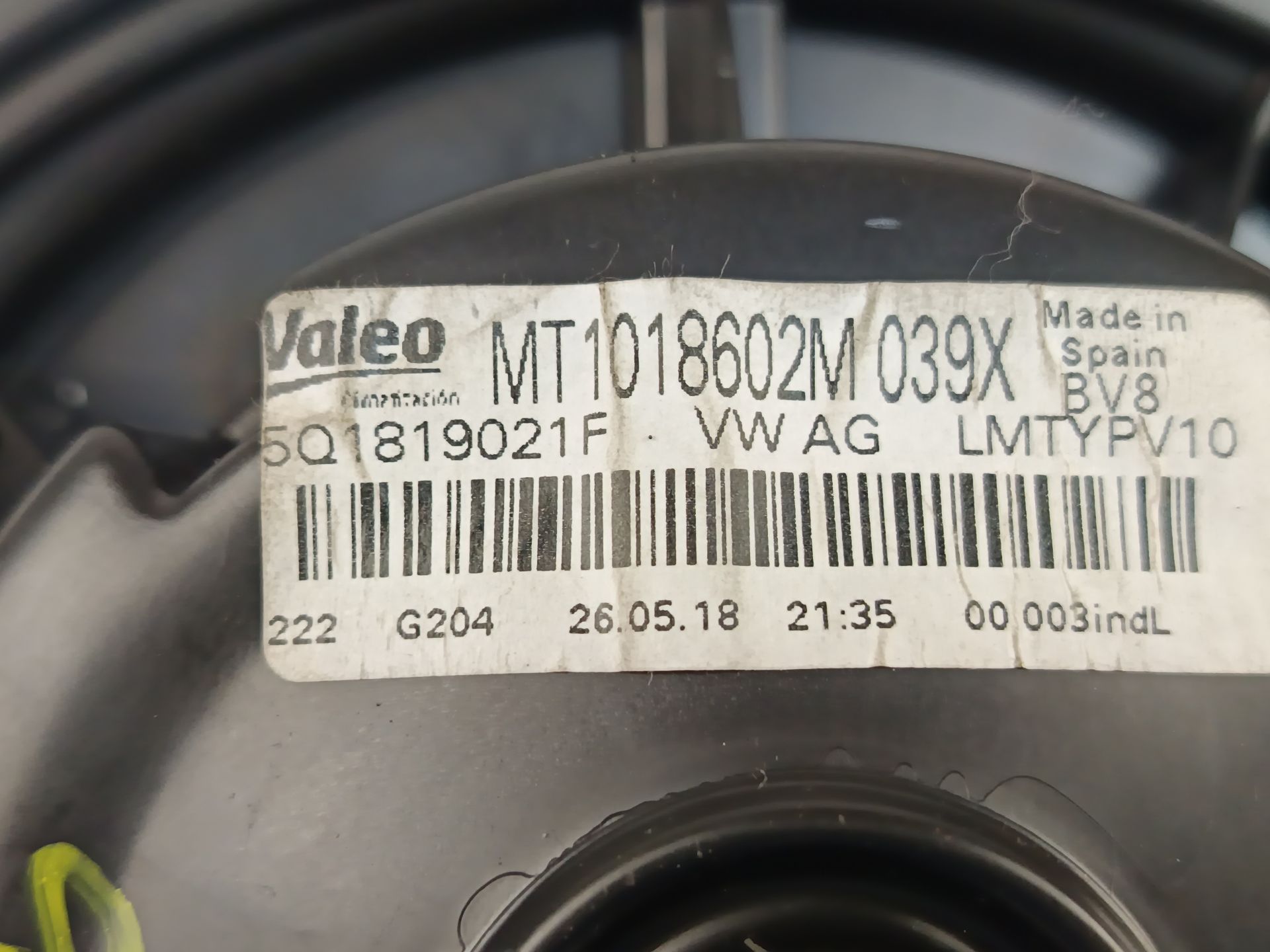 Disponemos la pieza 5Q1819021F actualmente desmontada.