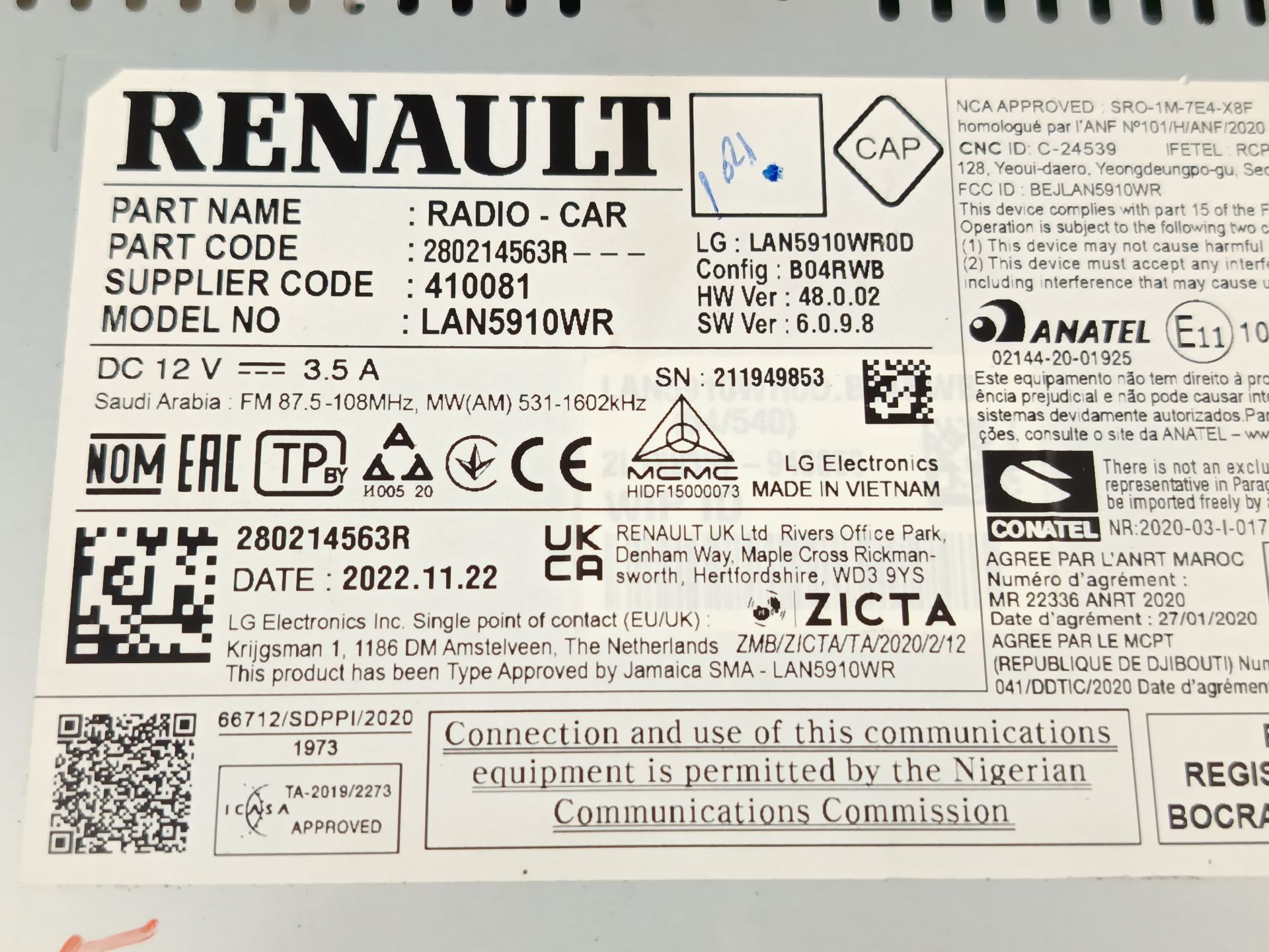 Disponemos la pieza 280214563R actualmente desmontada.