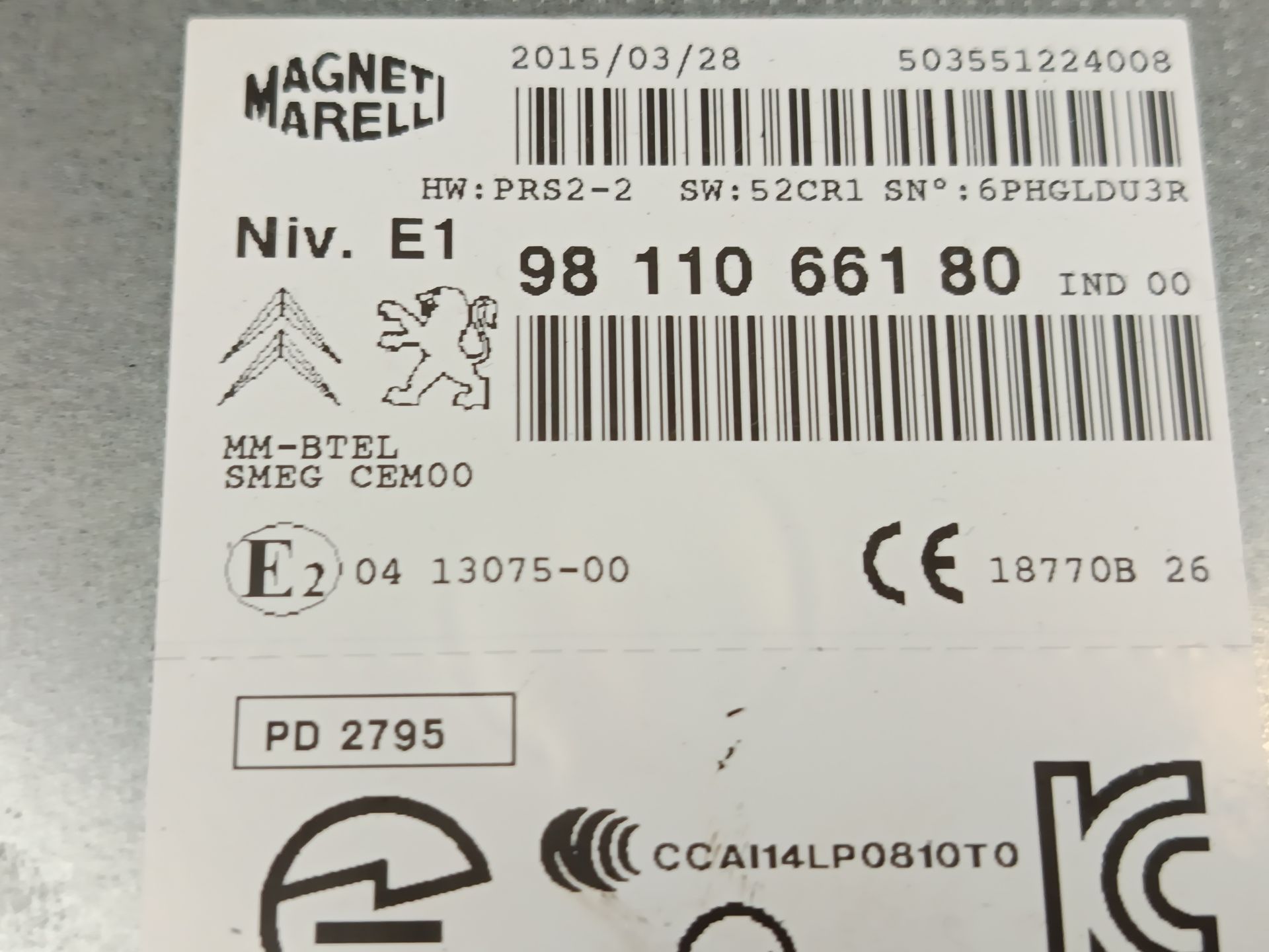 Disponemos la pieza 9811066180 actualmente desmontada.